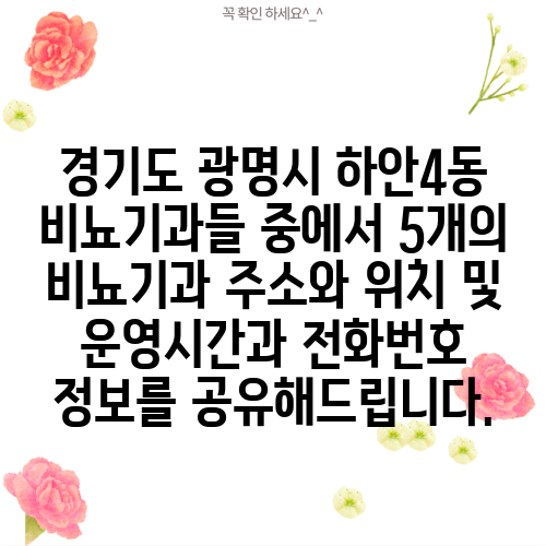 경기도 광명시 하안4동 비뇨기과들 중에서 5개의 비뇨기과 주소와 위치 및 운영시간과 전화번호 정보를 공유해드립니다.