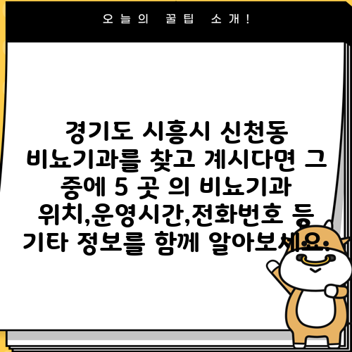 1. 신천탑비뇨기과의원 시흥 운영시간 및 위치, 전화번호 확인하세요!
