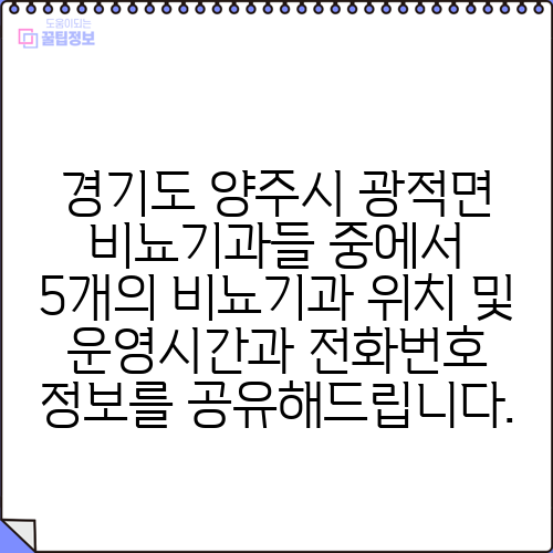 경기도 양주시 광적면 비뇨기과들 중에서 5개의 비뇨기과 위치 및 운영시간과 전화번호 정보를 공유해드립니다.