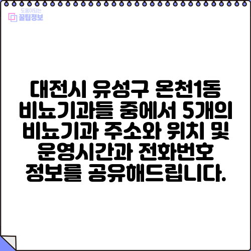 5. 유성비뇨기과의원 운영시간 및 위치, 전화번호 확인하세요!