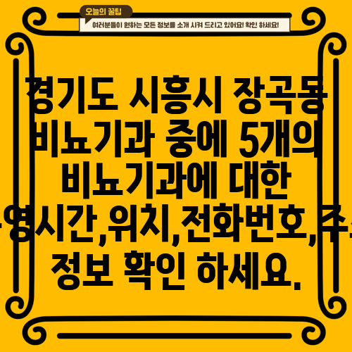 경기도 시흥시 장곡동 비뇨기과 중에 5개의 비뇨기과에 대한 운영시간,위치,전화번호,주소 정보 확인 하세요.
