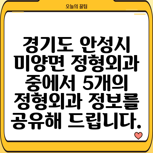 경기도 안성시 미양면 정형외과 중에서 5개의 정형외과 정보를 공유해 드립니다.