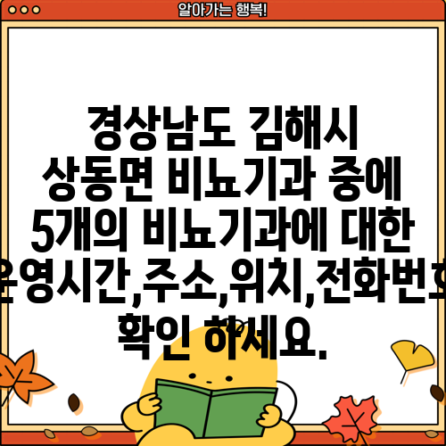 김해 비뇨기과 병원: 위치, 운영 시간, 전화번호