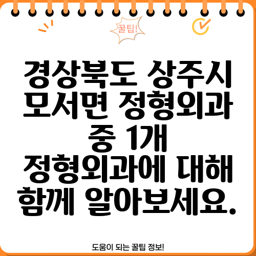 경상북도 상주시 모서면 정형외과 중 1개 정형외과에 대해 함께 알아보세요.