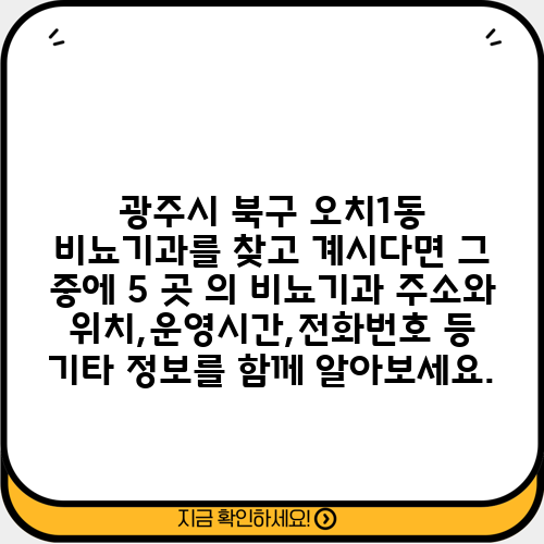 이 블로그 글에서는 광주 북구에 위치한 5개의 추천 비뇨기과 의원에 대해 소개합니다. 각 의원의 운영 시간, 위치, 연락처 정보, 편의 시설, 특이사항을 포함한 상세 정보를 제공합니다. 또한 의원 선택 시 고려해야 할 사항과 비뇨기과 질환에 대한 조기 진단 및 치료의 중요성에 대해 설명합니다. 이 글은 광주 북구에 거주하는 사람들이 비뇨기과 의료 서비스를 찾는 데 도움이 되도록 작성되었습니다.