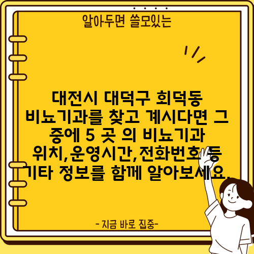 이 블로그 글은 대전 대덕구에 위치한 5개의 의료 기관에 대한 정보를 제공합니다. 각 의료 기관에 대한 정보는 다음과 같습니다.