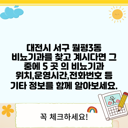 대전시 서구 월평3동 비뇨기과를 찾고 계시다면 그 중에 5 곳 의 비뇨기과 위치,운영시간,전화번호 등 기타 정보를 함께 알아보세요.