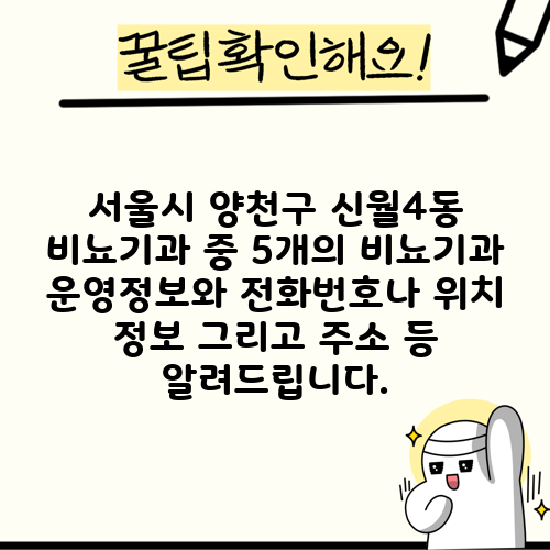 서울시 양천구 신월4동 비뇨기과 중 5개의 비뇨기과 운영정보와 전화번호나 위치 정보 그리고 주소 등 알려드립니다.