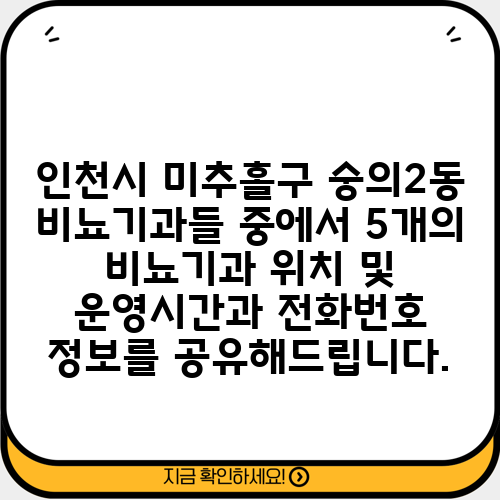 1. 인하비뇨기과의원 운영시간 및 위치, 전화번호 확인하세요!