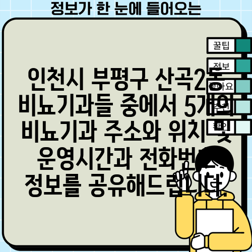 인천 부평구 비뇨의학과 병원 5곳: 운영시간, 위치, 전화번호 확인