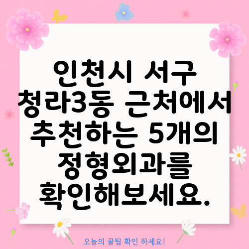인천시 서구 청라3동 근처에서 추천하는 5개의 정형외과를 확인해보세요.