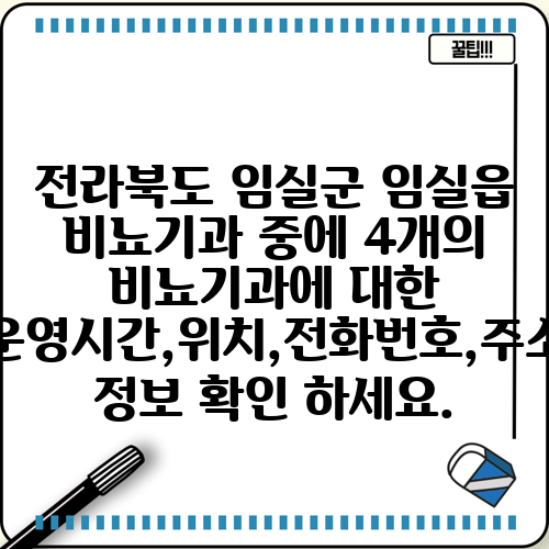 전라북도 임실군 임실읍 비뇨기과 중에 4개의 비뇨기과에 대한 운영시간,위치,전화번호,주소 정보 확인 하세요.