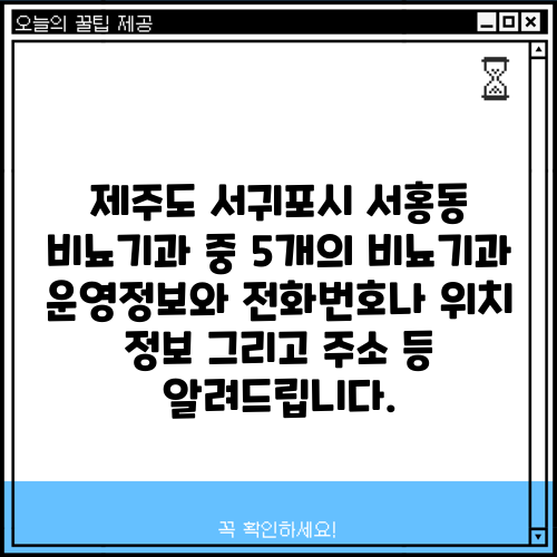 이 블로그 글은 제주 서귀포시에 위치한 다섯 개의 병원과 의원에 대한 정보를 제공합니다. 각 병원과 의원은 다음 정보를 포함하여 소개됩니다.