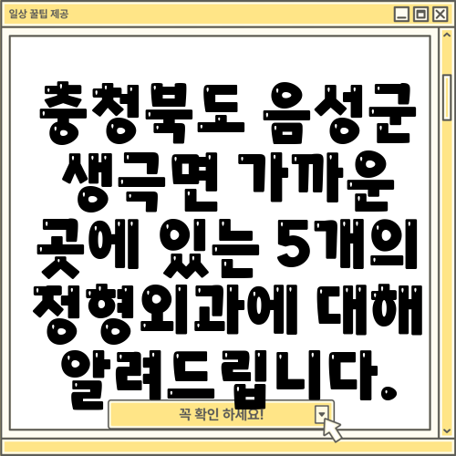 충청북도 음성군 생극면 가까운 곳에 있는 5개의 정형외과에 대해 알려드립니다.