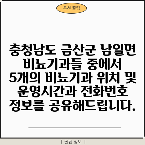 충청남도 금산군 남일면 비뇨기과들 중에서 5개의 비뇨기과 위치 및 운영시간과 전화번호 정보를 공유해드립니다.