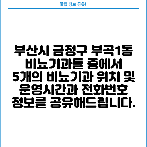 부산시 금정구 부곡1동 비뇨기과들 중에서 5개의 비뇨기과 위치 및 운영시간과 전화번호 정보를 공유해드립니다.