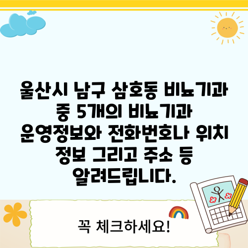 울산시 남구 삼호동 비뇨기과 중 5개의 비뇨기과 운영정보와 전화번호나 위치 정보 그리고 주소 등 알려드립니다.