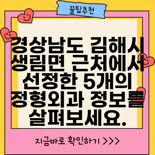 경상남도 김해시 생림면 근처에서 선정한 5개의 정형외과 정보를 살펴보세요.