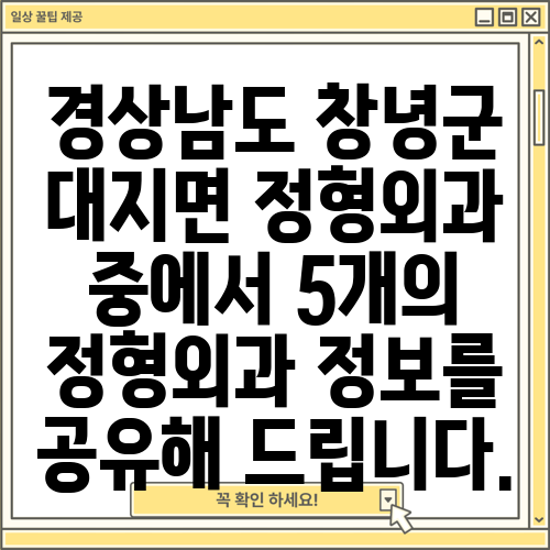 경상남도 창녕군 대지면 정형외과 중에서 5개의 정형외과 정보를 공유해 드립니다.