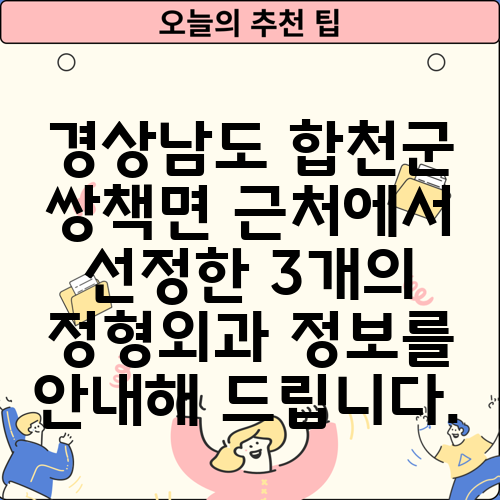 경상남도 합천군 쌍책면 근처에서 선정한 3개의 정형외과 정보를 안내해 드립니다.