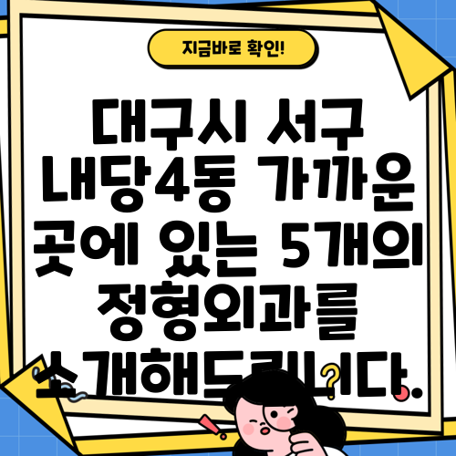 대구시 서구 내당4동 가까운 곳에 있는 5개의 정형외과를 소개해드립니다.