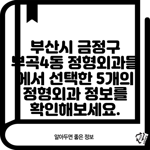 부산시 금정구 부곡4동 정형외과들 에서 선택한 5개의 정형외과 정보를 확인해보세요.