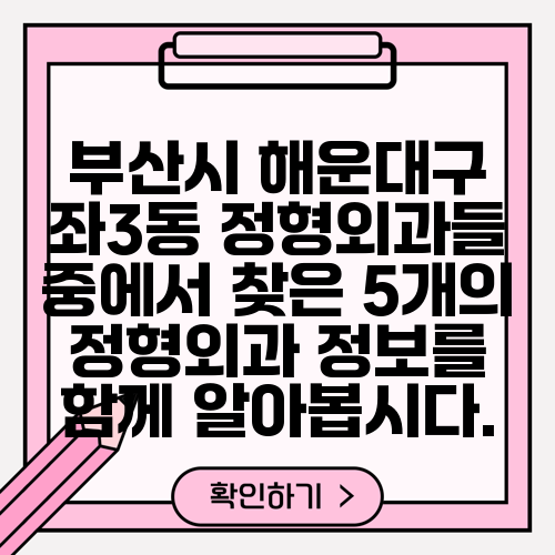 부산시 해운대구 좌3동 정형외과들 중에서 찾은 5개의 정형외과 정보를 함께 알아봅시다.