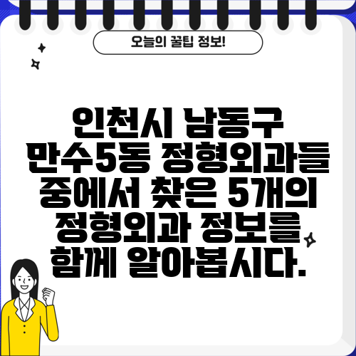 인천시 남동구 만수5동 정형외과들 중에서 찾은 5개의 정형외과 정보를 함께 알아봅시다.