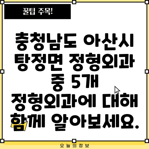 충청남도 아산시 탕정면 정형외과 중 5개 정형외과에 대해 함께 알아보세요.