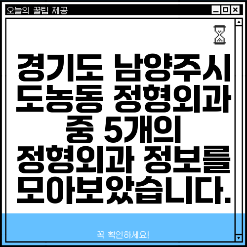 경기도 남양주시 도농동 정형외과 중 5개의 정형외과 정보를 모아보았습니다.