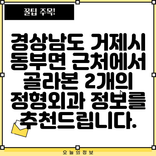 경상남도 거제시 동부면 근처에서 골라본 2개의 정형외과 정보를 추천드립니다.