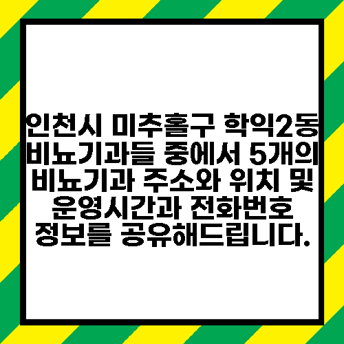 인천시 미추홀구 학익2동 비뇨기과들 중에서 5개의 비뇨기과 주소와 위치 및 운영시간과 전화번호 정보를 공유해드립니다.