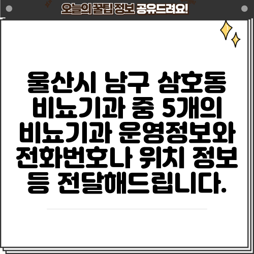 울산시 남구 삼호동 비뇨기과 중 5개의 비뇨기과 운영정보와 전화번호나 위치 정보 등 전달해드립니다.