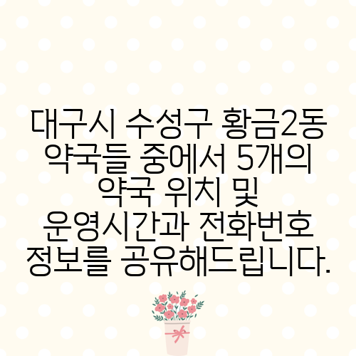 대구시 수성구 황금2동 약국들 중에서 5개의 약국 위치 및 운영시간과 전화번호 정보를 공유해드립니다.