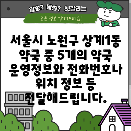 서울시 노원구 상계1동 약국 중 5개의 약국 운영정보와 전화번호나 위치 정보 등 전달해드립니다.
