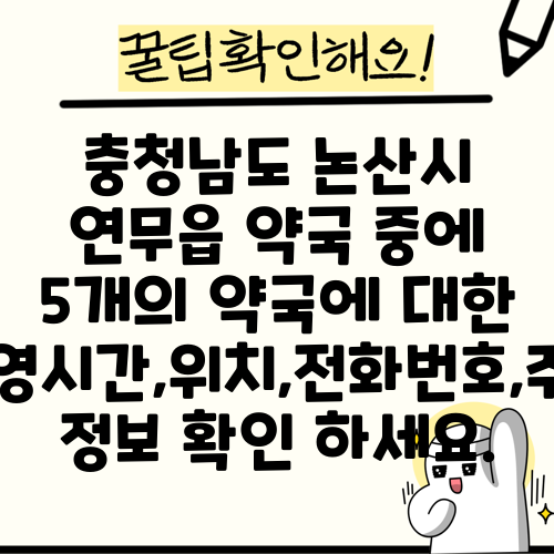 충청남도 논산시 연무읍 약국 중에 5개의 약국에 대한 운영시간,위치,전화번호,주소 정보 확인 하세요.