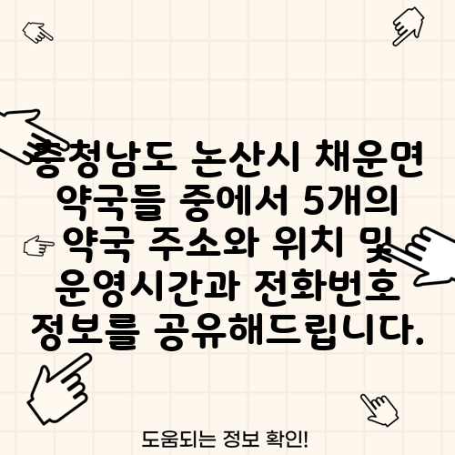 충청남도 논산시 채운면 약국들 중에서 5개의 약국 주소와 위치 및 운영시간과 전화번호 정보를 공유해드립니다.