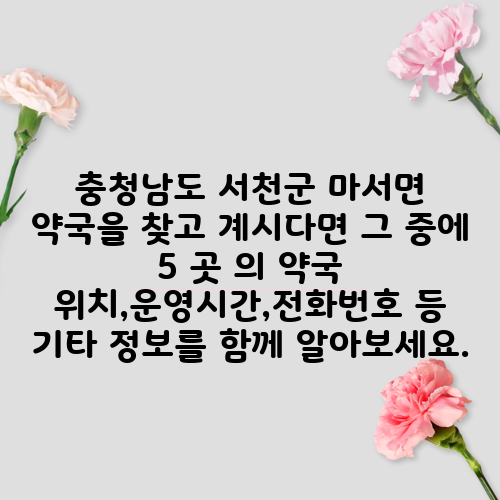 충청남도 서천군 마서면 약국을 찾고 계시다면 그 중에 5 곳 의 약국 위치,운영시간,전화번호 등 기타 정보를 함께 알아보세요.