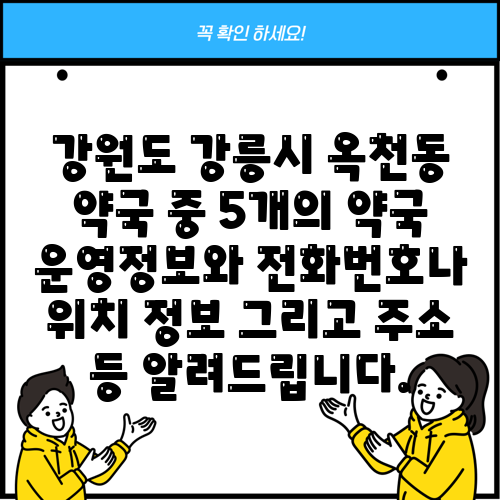강원도 강릉시 옥천동 약국 중 5개의 약국 운영정보와 전화번호나 위치 정보 그리고 주소 등 알려드립니다.