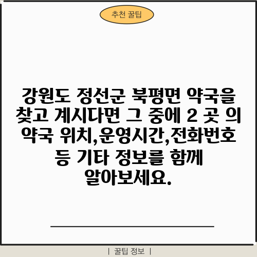 강원도 정선군 북평면 약국을 찾고 계시다면 그 중에 2 곳 의 약국 위치,운영시간,전화번호 등 기타 정보를 함께 알아보세요.