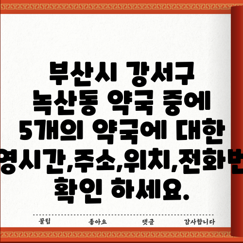 부산시 강서구 녹산동 약국 중에 5개의 약국에 대한 운영시간,주소,위치,전화번호 확인 하세요.