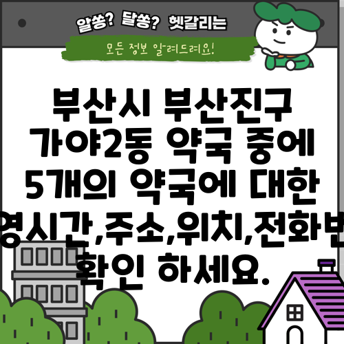 부산시 부산진구 가야2동 약국 중에 5개의 약국에 대한 운영시간,주소,위치,전화번호 확인 하세요.