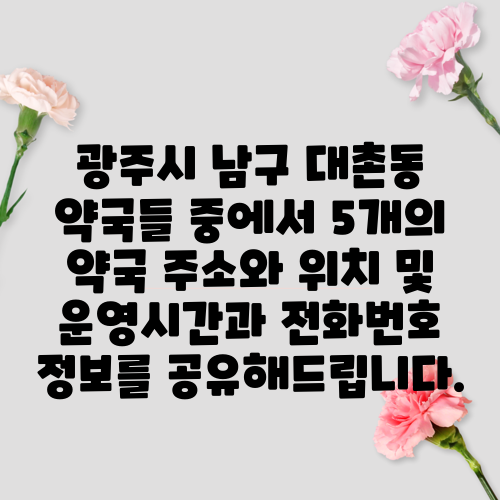 광주시 남구 대촌동 약국들 중에서 5개의 약국 주소와 위치 및 운영시간과 전화번호 정보를 공유해드립니다.