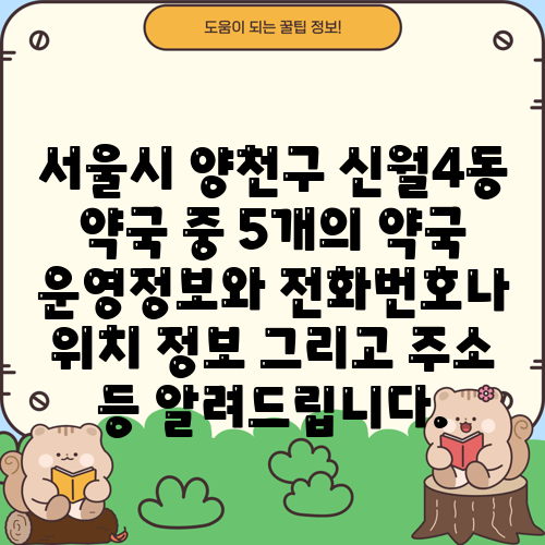 서울시 양천구 신월4동 약국 중 5개의 약국 운영정보와 전화번호나 위치 정보 그리고 주소 등 알려드립니다.