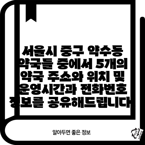 서울시 중구 약수동 약국들 중에서 5개의 약국 주소와 위치 및 운영시간과 전화번호 정보를 공유해드립니다.
