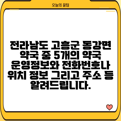 전라남도 고흥군 동강면 약국 중 5개의 약국 운영정보와 전화번호나 위치 정보 그리고 주소 등 알려드립니다.