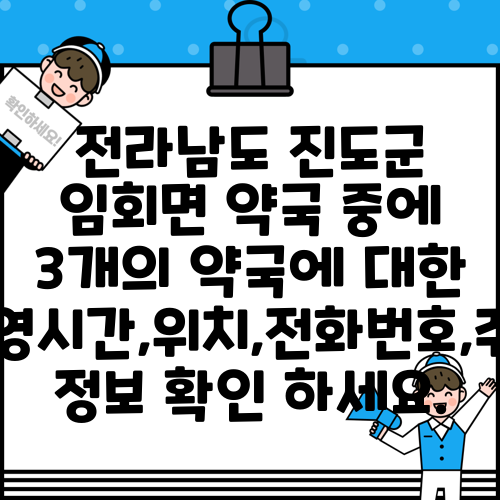 전라남도 진도군 임회면 약국 중에 3개의 약국에 대한 운영시간,위치,전화번호,주소 정보 확인 하세요.