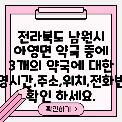 전라북도 남원시 아영면 약국 중에 3개의 약국에 대한 운영시간,주소,위치,전화번호 확인 하세요.
