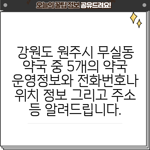 강원도 원주시 무실동 약국 중 5개의 약국 운영정보와 전화번호나 위치 정보 그리고 주소 등 알려드립니다.