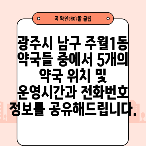 광주시 남구 주월1동 약국들 중에서 5개의 약국 위치 및 운영시간과 전화번호 정보를 공유해드립니다.